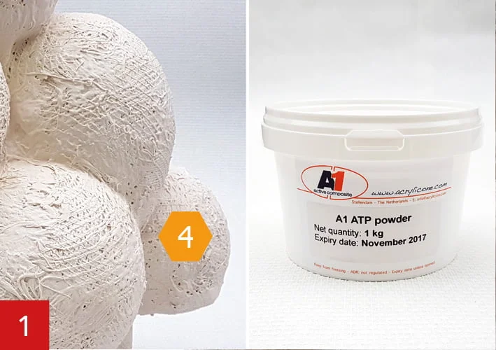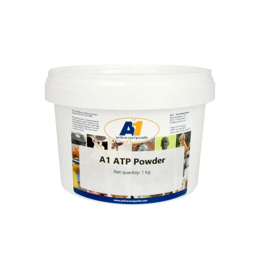 Is a volume thickener. This allows the A1 to be thickened to filler thickness. This thickened A1 can be used to finish an object and apply a smooth surface. We recommend using A1 ATP Powder for indoor applications exclusively