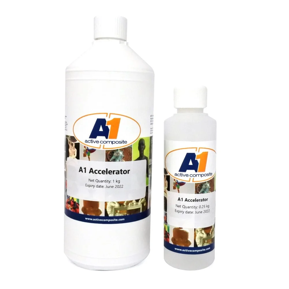 Can be used to shorten the processing time. Always add the A1 Accelerator to the A1 Liquid. A1 Accelerator can also be used to correct any delaying effects of some pigments and fillers.