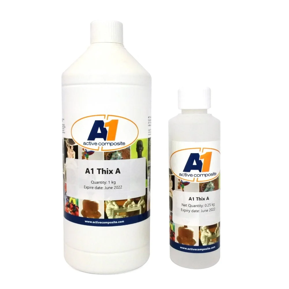 Is an additive to thicken the product into a gel. This thixotropy agent is used to make gelcoats and to manufacture vertical or overhanging parts. Add the A1 Thix A to the created A1 until the desired thickness (viscosity) is reached.