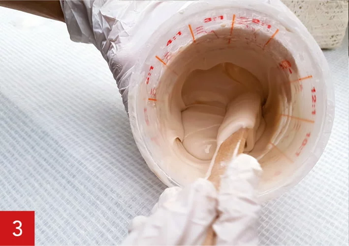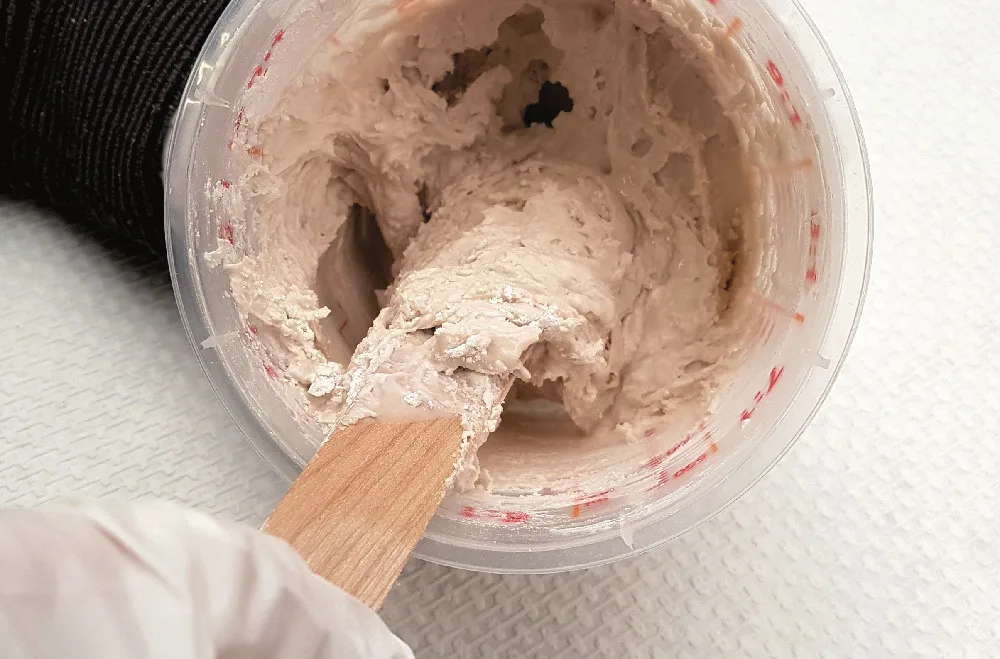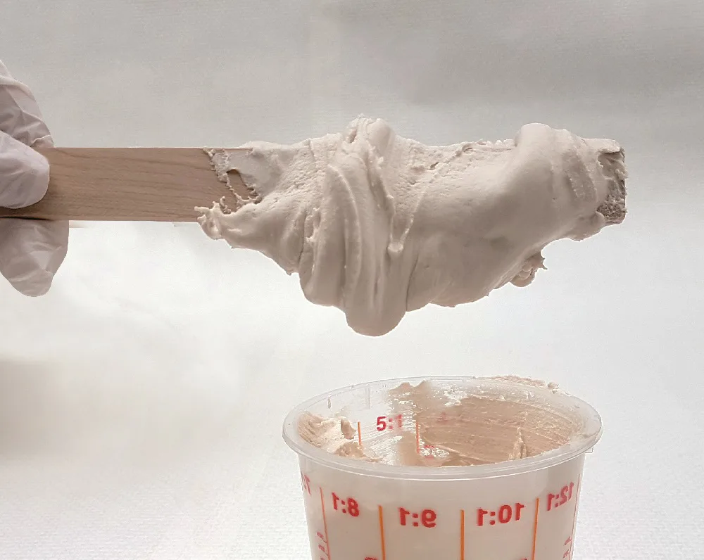 - Apply the A1 top layer to the mould with a brush, for example. Keep a layer thickness of at least 1 mm.
