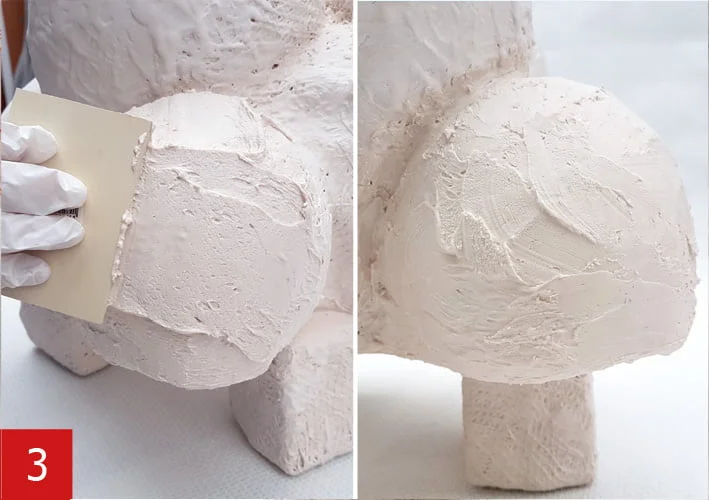 Add A1 Thix A to the A1 to thicken the A1 into a paste. Apply the thickened A1 paste with a spatula or putty tool. This creates a layer that you can finish within 1 hour with a slightly damp sponge for a smooth result. After drying you can work on the A1 object with (waterproof) abrasive pads or (waterproof) sandpaper.