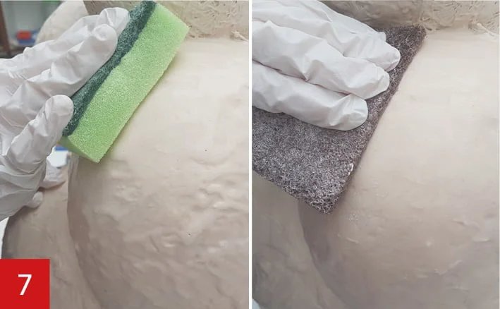 After drying you can if desired with waterproof abrasive pads or waterproof sandpaper further refine to an even smoother whole.