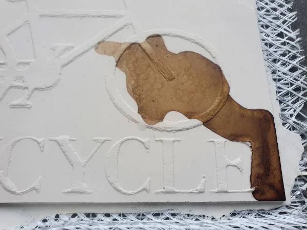 Stains as a result of moisture like coffee, wine or dirty water can not be removed from A1 which is not protected by a coating, sealer or paint system. When moisture/water comes in contact with A1, the water will be absorbed by the A1 including all colores. The moisture in the A1 will evaporate but the pigments/colors in the moisture will be left in the A1 creating stains. These stains can not be removed.
